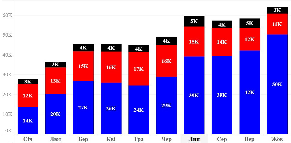 З легковиками з Європи все навпаки: з травня по жовтень імпорт зростав, а жовтні зафіксовано максимум — 50 тисяч вживаних авто.