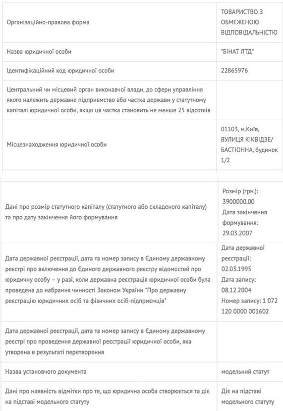 Из документов «Форт Хаус» мы видим, что застройщиком проекта является юридическое лицо ООО «БИНАТ ЛТД». Чтобы узнать о нем больше, следует проверить наличие компании в Едином государственном реестре юридических и физических лиц-предпринимателей. Вводим код ЕГРПОУ на сайте