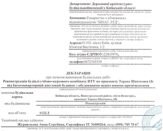 Согласно декларации «БИНАТ ЛТД» осуществляет реконструкцию незавершенного строительства административного здания ПТУ под многоквартирный жилой дом. Тут важно понимать, на основании чего получена декларация о начале строительных работ. Для данного проекта декларация была получена на основании разработанного застройщиком строительного проекта и свидетельства о праве собственности на ранее приобретенный компанией объект (административное здание ПТУ). То есть термин «реконструкция», который фигурирует в декларации, буквально означает вид градостроительной деятельности по изменению параметров объекта капитального строительства в рамках его существующего периметра.