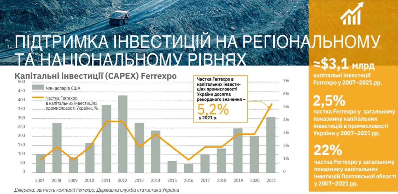 Ferrexpo вже інвестувала у свою діяльність в Україні понад $3 млрд, сплатила понад $1,3 млрд прямих податків в бюджет країни, надала пряму підтримку місцевим громадам та є одним із найбільших роботодавців у Полтавській області.