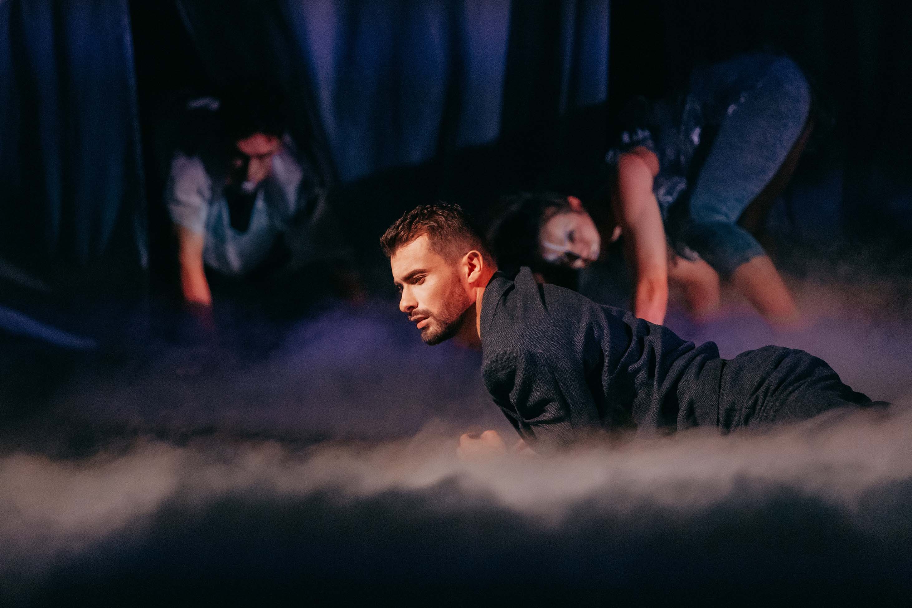Вистава почалася з диму, який стелився по підлозі біля ніг глядачів після послідував музичний супровід. Протягом усього спектаклю була дуже цікаво підібрана музика, яка добре відобразила стан головного героя і того, що відбувається на сцені. Зізнаюся чесно, я до кінця не зрозуміла всієї задумки бо сучасне мистецтво розраховане на те, щоб ми включали свою уяву і додумували. Дуже чітко простежувалася лінія всієї вистави, що головний герой стурбований, він залежний від соціуму, який дуже часто впливає на нас і на наші рішення. Дуже тонко я відчула головну героїню, яка була вишуканою, чуттєвої, романтичною. Головний герой з нею танцював чуттєвий та романтичний танець.
