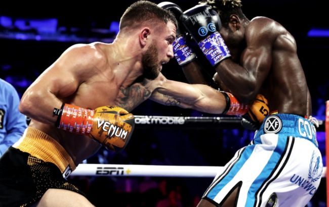 Український боксер Василь Ломаченко здобув перемогу в поєдинку ганца Річарда Коммі в легкій ваговій категорії. Бій тривав усі 12 раундів, хоч у сьом