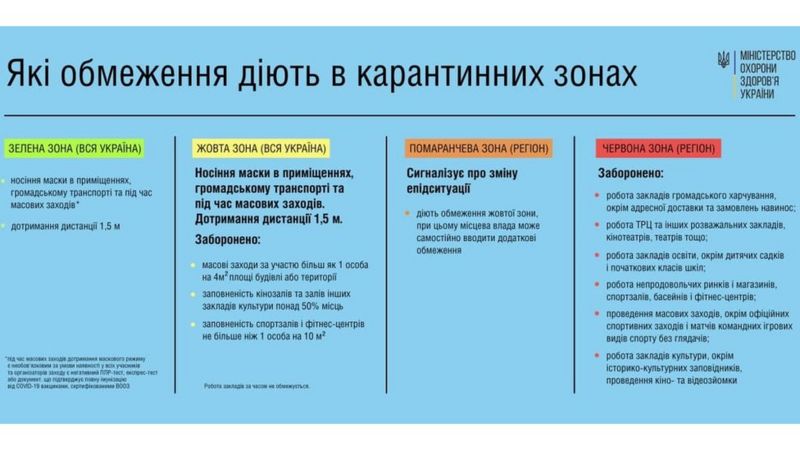 З наступного тижня Україна поверне ряд обмежень через коронавірус, адже за кількістю хворих її регіони виходять з зеленої зони.