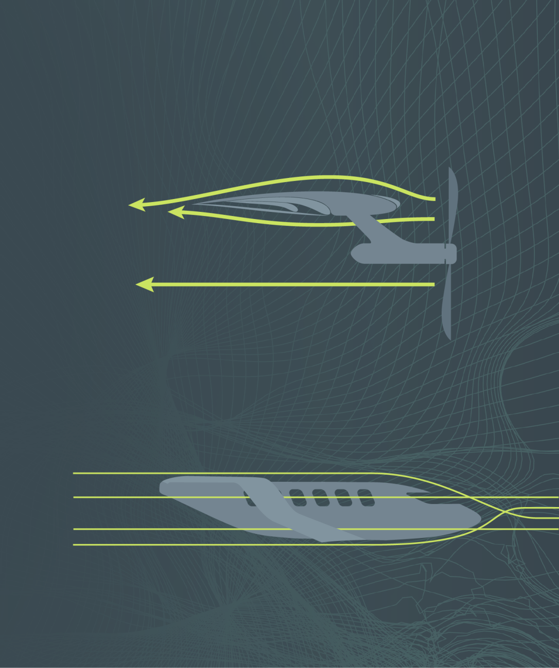 Во время полета закрылки убираются, и тяга толкает самолет вперед, как обычно.