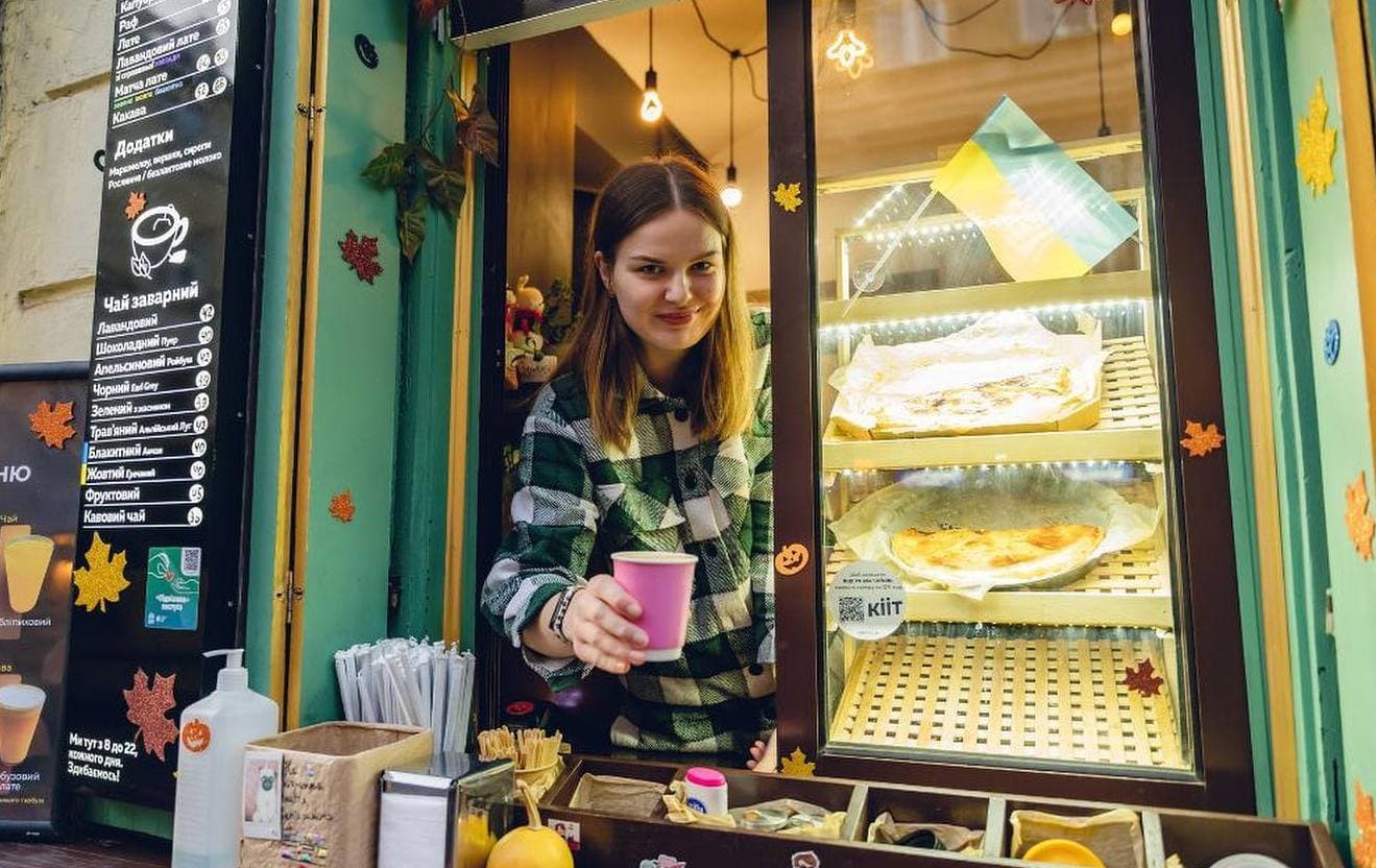На початку квітня переселенці з Ірпеня, Бородянки та Ніжина – Сергій Стоян, Іван Демченко та Дарина Мазур – відкрили у Львові “віконце” з кавою та пирогами. Завдяки соціальним мережам точка, в якій готують каву, галети та пироги, миттєво стала популярною. «Коли ми сюди приїхали, то шукали роботу, але нічого не могли знайти. Мали при собі деякі гроші. Могли жити у Львові кілька місяців, нічого не роблячи або щось собі придумати. Вдома ми втратили все, що могли. Чому б не ризикнути – вирішили почати свою справу», – розповідає Іван. Заклад «Кііт» отримав назву на честь кота одного з власників, якого також привезти до Львова. Пізніше ще одну кав’ярню Kііт запустили у Львові на Богдана Лепкого, а пізніше вже й у столиці – біля Палацу спорт. Наразі там подають кавові напої, веганські галети та пироги.