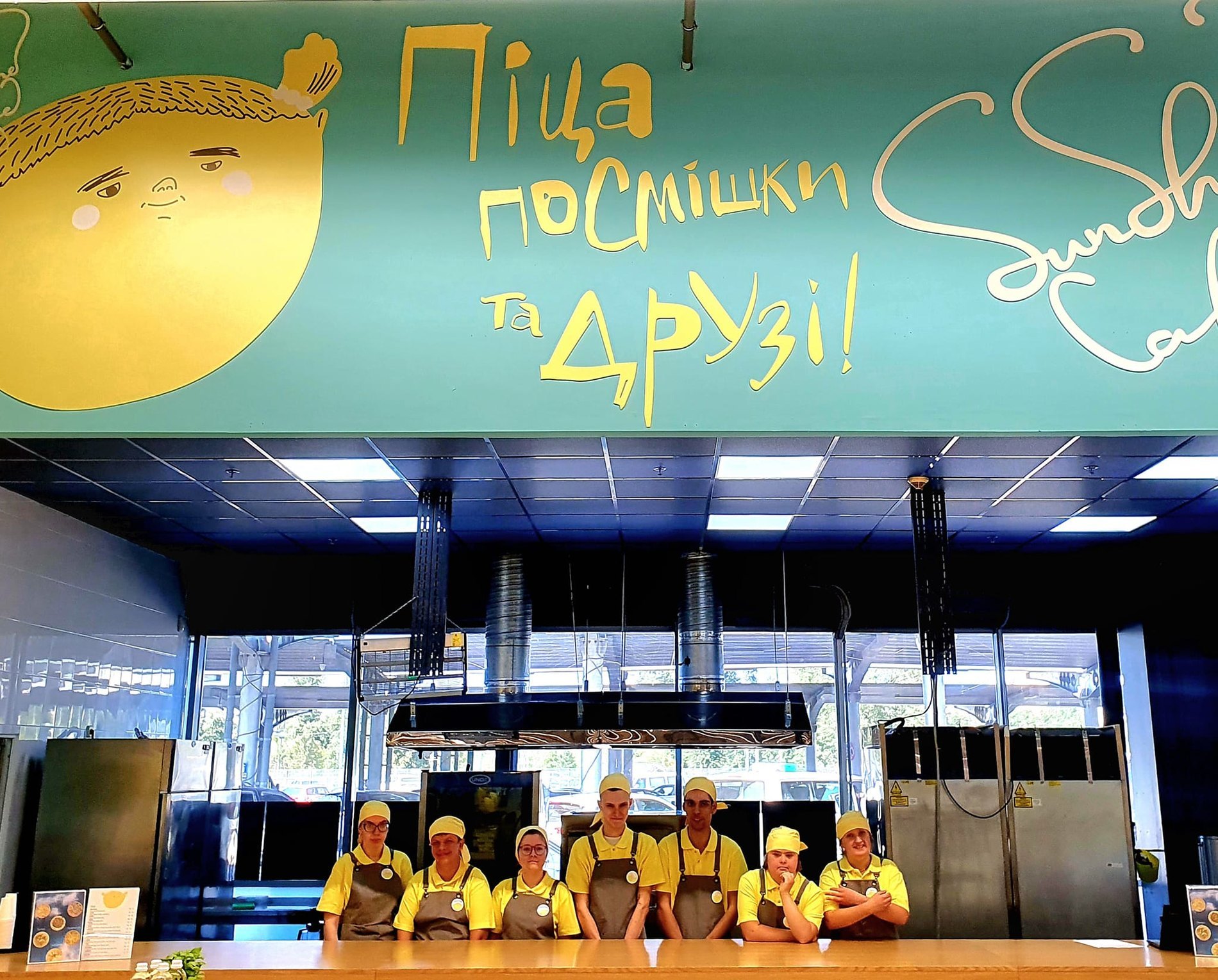 Соціальне кафе-пекарня Sunshine Cafe – це перший заклад у столиці, де працюють люди з ментальною інвалідністю. Запустила проект керівниця ГО «Сонячні люди» Аліна Живаго у вересні. У закладі, розташованому в гіпермаркеті Metro, працюють піцейола, пекарі й бариста. Відвідувачі можуть бачити процес роботи на відкритій кухні. У меню кафе – 14 видів піци. Частину хліба передаватимуть малозабезпеченим людям, теробороні та ЗСУ. Також доступна доставка.